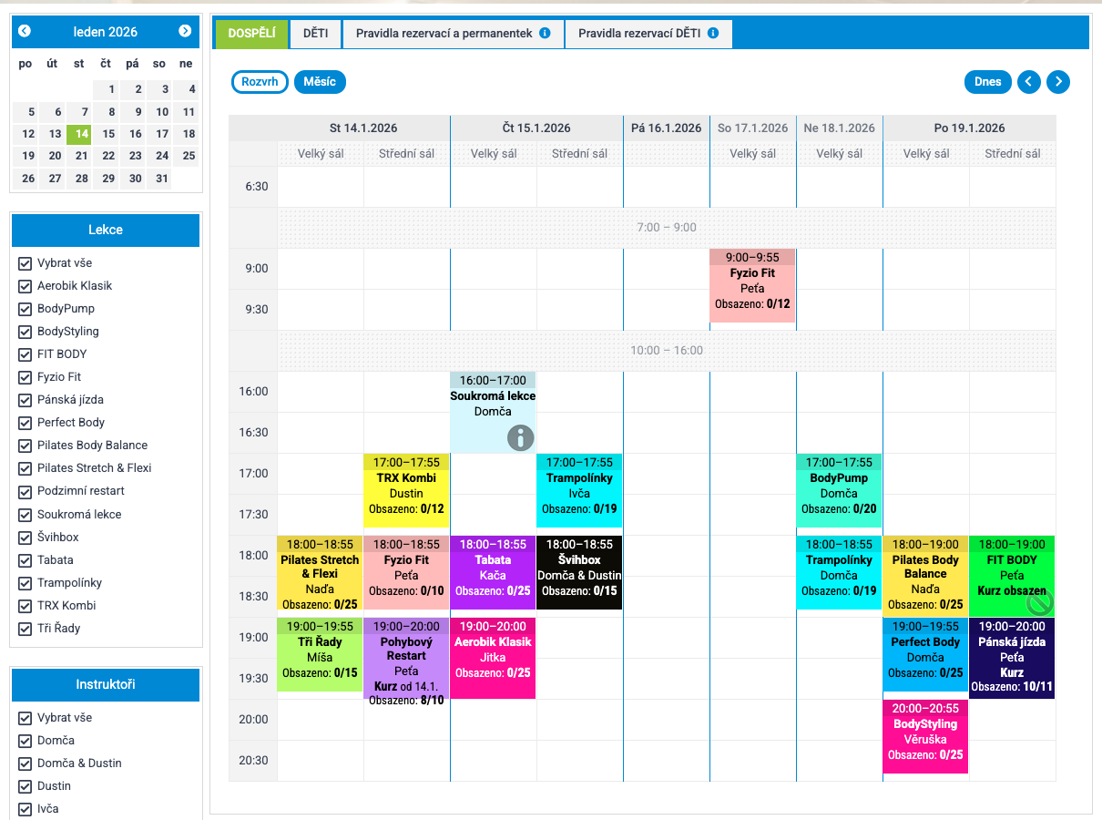 Vše na jednom místě: Od baby lekcí po tréninky pro seniory.